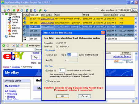 在拍賣結束之前多久出價,剩下的就是去放鬆或作別的事。 BayGenie 會自動為你出