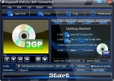 Bigasoft DVD to 3GP Converter是一款功能強大,簡易於使用的DVD到3GP格式